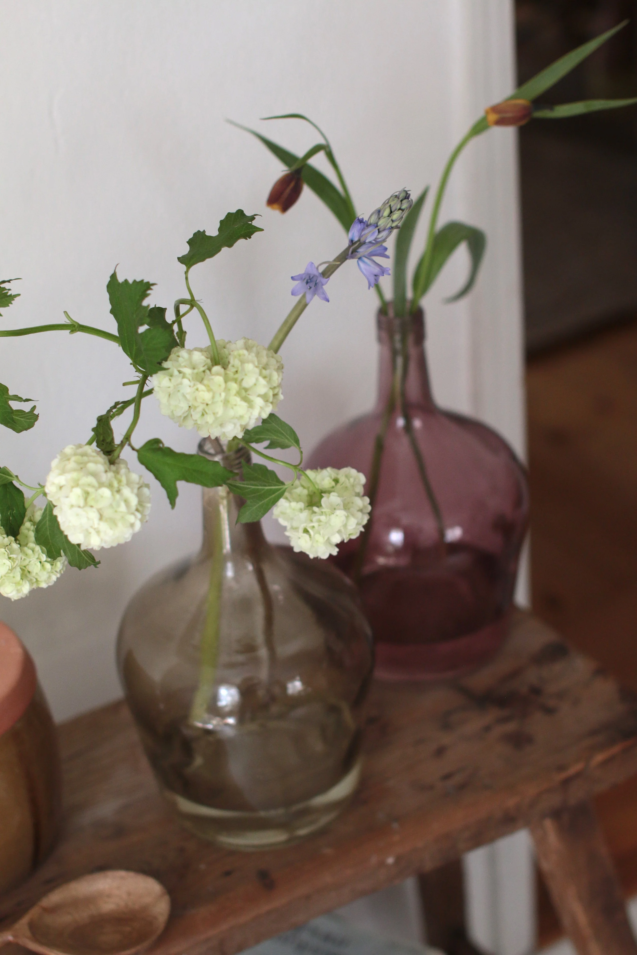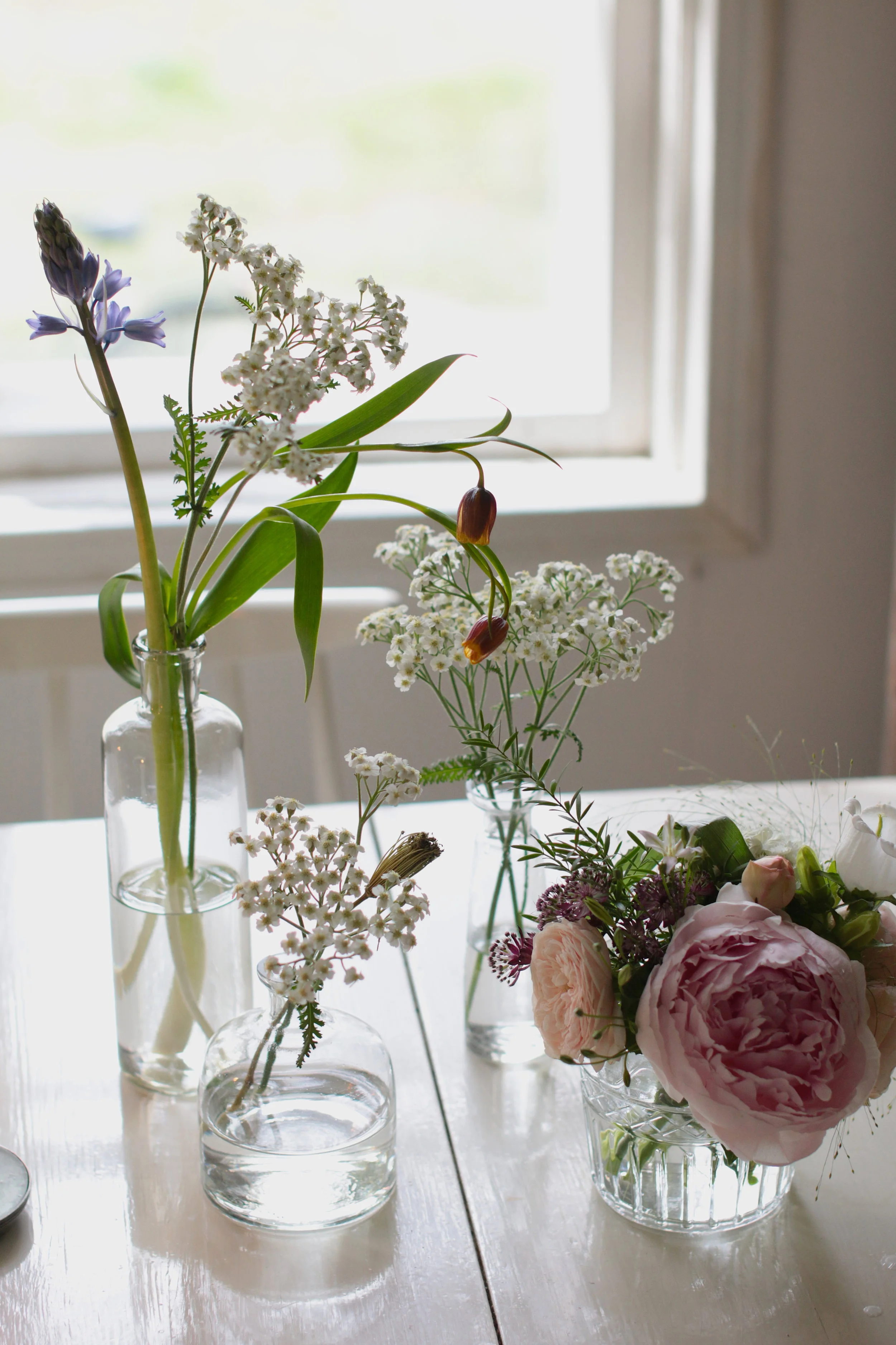 Väriä ja veikeitä muotoja! Kapeat maljojen suut tekevät kukkien asettelusta helpompaa.